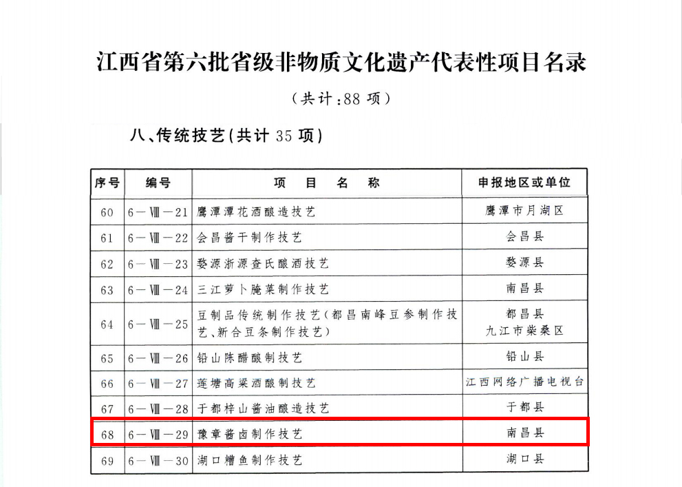 近日,江西省人民政府公布江西省第六批省級非物質文化遺產代表性項目名錄,煌上煌傳承保護的“豫章醬鹵制作技藝”成功入選。這一殊榮不僅是...