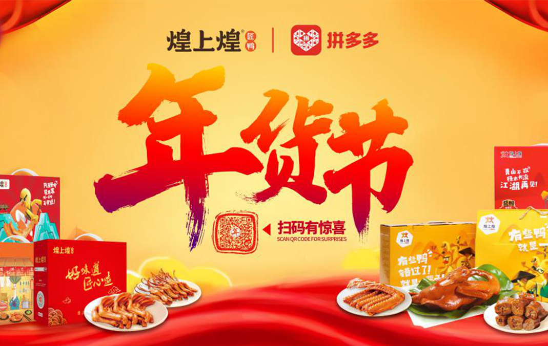 2019年12月1日,煌上煌和拼多多平臺共同打造年貨節(jié),推出新年特別款禮盒,用匠心致敬這一年以來為生活而努力的人。讓回家的人,都能吃煌上煌,過吉祥年。