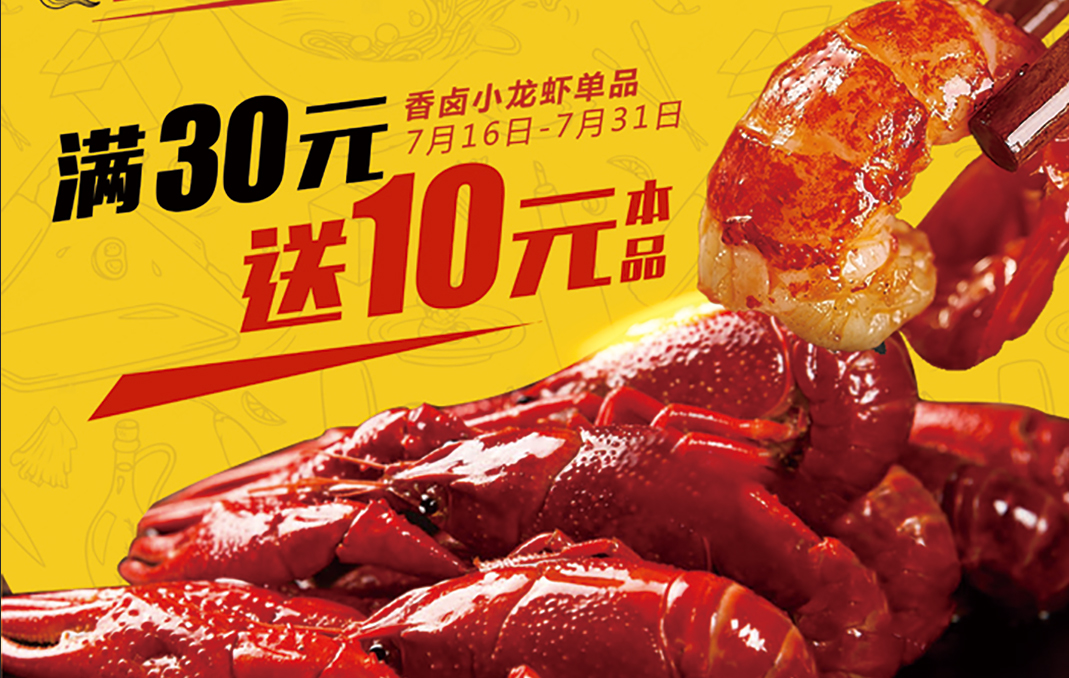 7月16-7月31日香鹵小龍蝦單品滿30元送10元本品