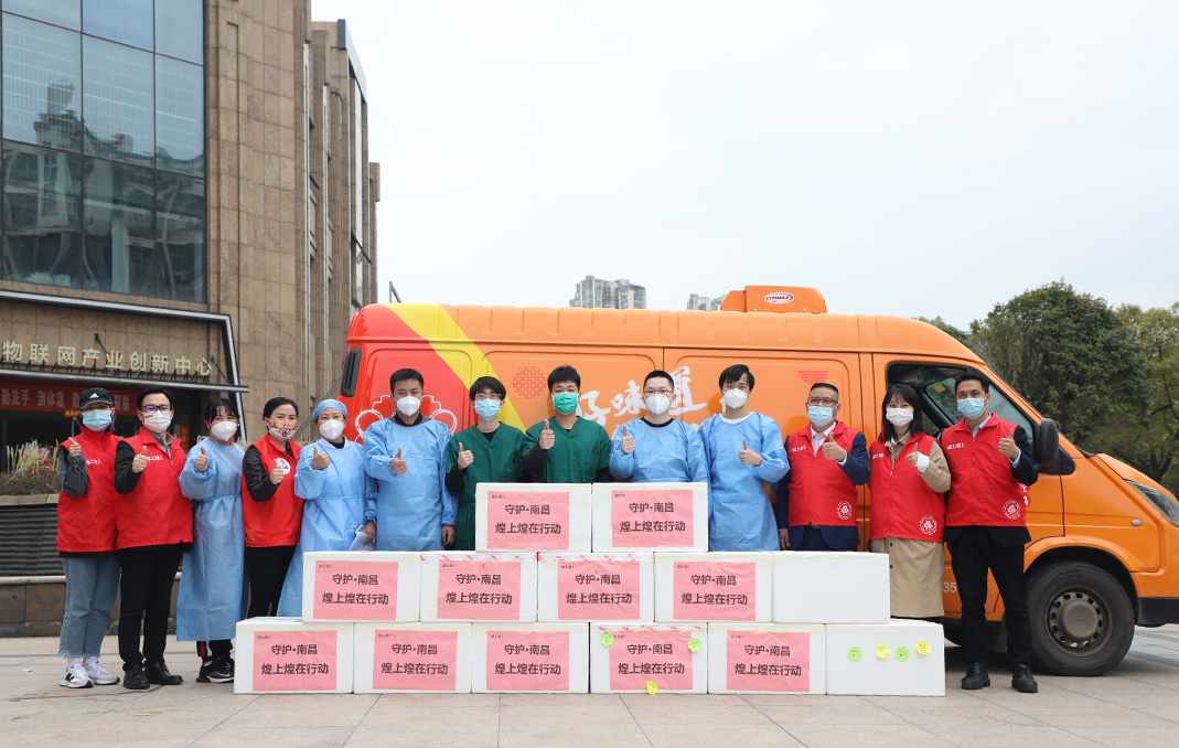 3月18日,煌上煌加急籌備樂鮮裝產(chǎn)品禮盒,附帶著煌上煌人親手寫下的祝福便簽,專車運(yùn)往南昌新建疫區(qū),讓抗疫一線的戰(zhàn)士們一飽口福,“贛”勁十足。